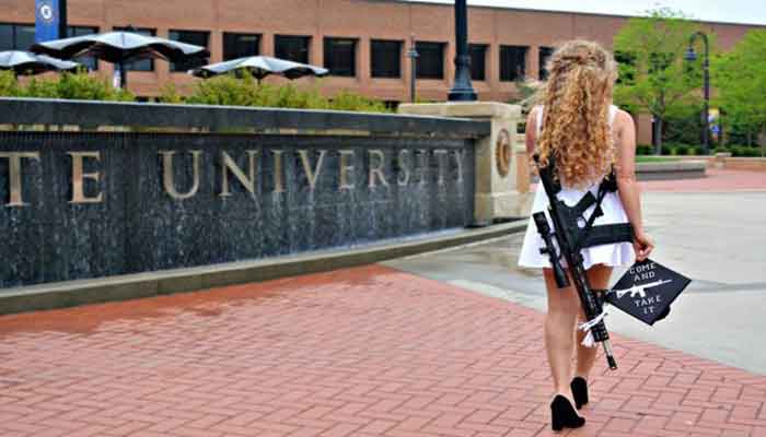প্রাণঘাতী অস্ত্র কাঁধে ঝুলিয়ে বিশ্ববিদ্যালয়ে তরুণী!