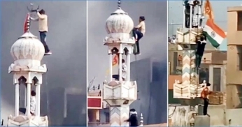 দিল্লির মসজিদে আগুন, মিনারে উঠল হনুমানের পতাকা