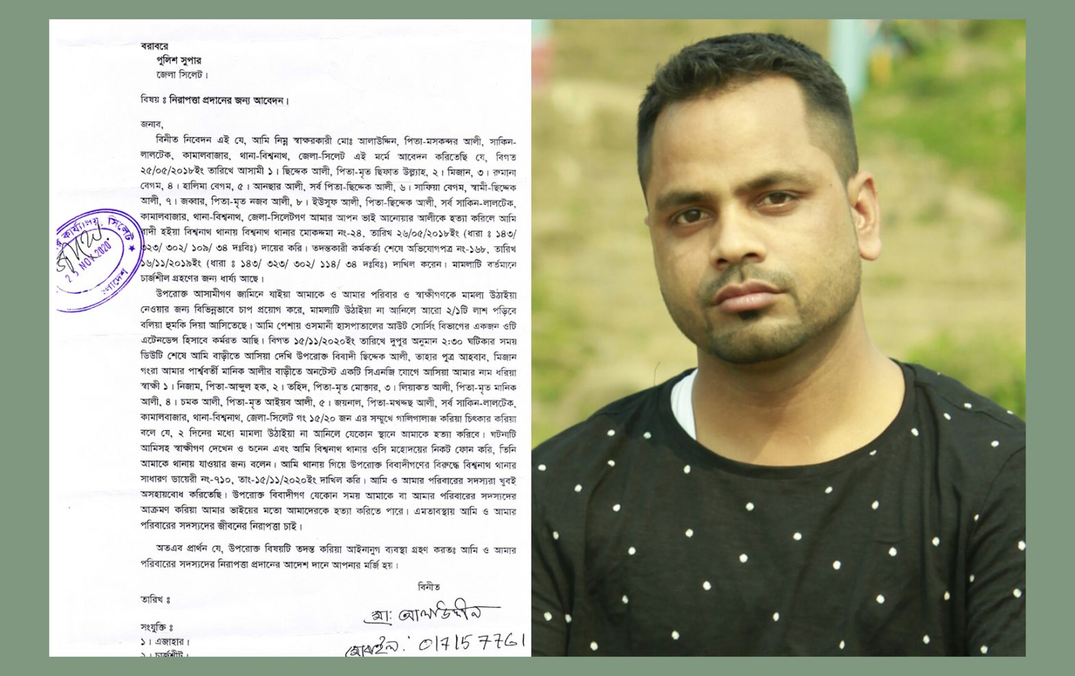 নিরাপত্তা চেয়ে সিলেট পুলিশ সুপারের কাছে বিশ্বনাথের আলাউদ্দিনের অভিযোগ