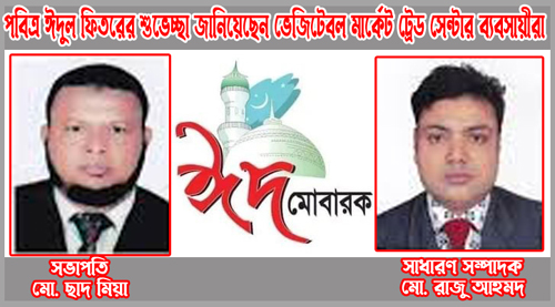 পবিত্র ঈদুল ফিতরের শুভেচ্ছা জানিয়েছেন ভেজিটেবল মার্কেট ট্রেড সেন্টার ব্যবসায়ীরা