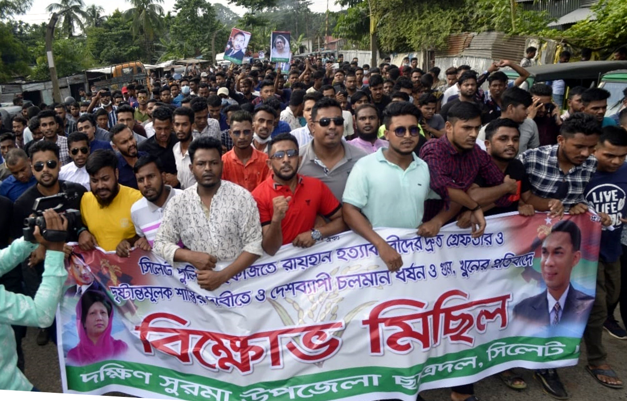 রায়হান হত্যাকারীদের শাস্তির দাবীতে দক্ষিণ সুরমায় ছাত্রদলের বিক্ষোভ মিছিল