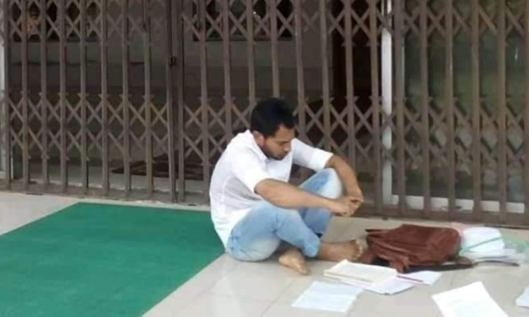 মসজিদের বারান্দায় পড়াশোনায় মগ্ন মুশফিক