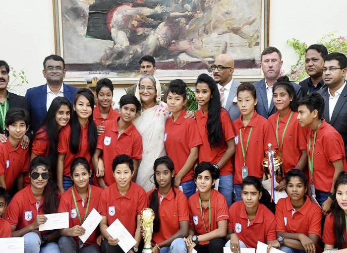 নারী ফুটবলারদের ১০ লাখ করে দিলেন প্রধানমন্ত্রী