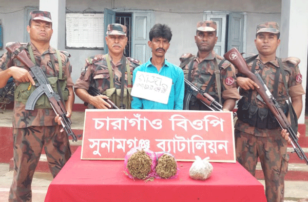 তাহিরপুর সীমান্তে গাঁজাসহ আটক ১