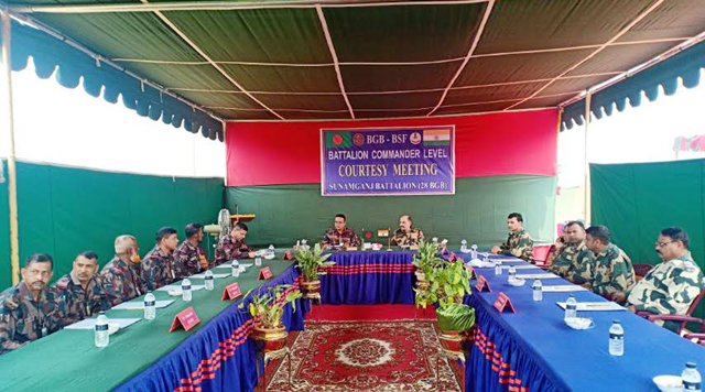 তাহিরপুর সীমান্তে বিজিবি – বিএসএফ পতাকা বৈঠক