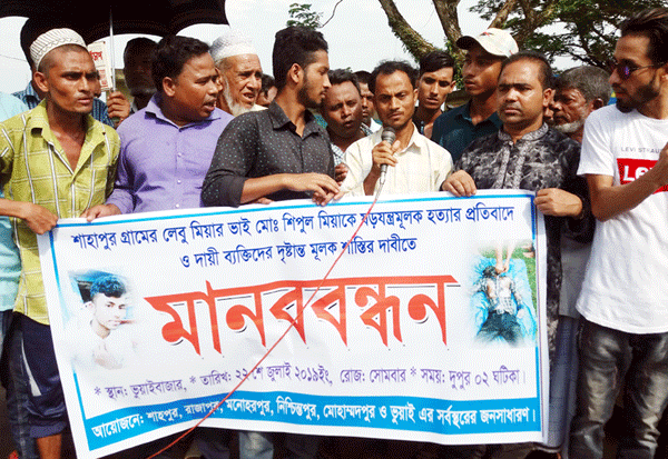 জুড়ীতে শিপুল হত্যার প্রতিবাদে ৬ গ্রামবাসীর মানববন্ধন