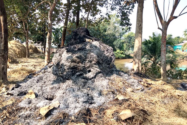 মাধবপুরে খড়ের গাদায় আগুন, ‘আতঙ্কে’ পুলিশ কর্মকর্তার পরিবার