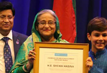 ‘চ্যাম্পিয়ন অব স্কিল ডেভেলপমেন্ট ফর ইয়ূথ’ পুরস্কার পেলেন প্রধানমন্ত্রী