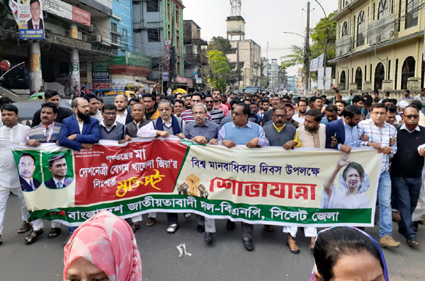 সিলেটে পুলিশের শর্ত মেনে নগরীতে শোভাযাত্রা করেছে সিলেট জেলা বিএনপি।