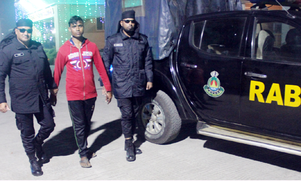 মঙ্গলবার রাত সাড়ে ৮টায় গোপন সংবাদের ভিত্তিতে অভিযানে করে সিলেট জেলার গোয়াইনঘাটের তারুখাল গ্রামস্থ পশ্চিম জাফলং আর্দশ দাখিল মাদ্রাসা সামনে থেকে তাকে আটক করে র‌্যাব-৯।