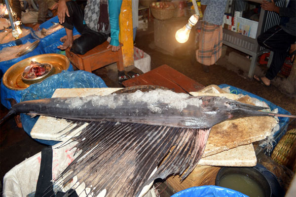 রোববার (৫ জানুয়ারি) ভোরে একজন বিক্রেতা চট্টগ্রাম থেকে থাইল্যান্ডি একটি পংখীরাজ মাছ বিক্রি জন্য লালবাজারে নিয়ে আসেন। মাছটির ওজন প্রায় ৩৮ কেজি। মাছটি ৫০ হাজার টাকায় বিক্রি জন্য দাম চাচ্ছেন মৎস্য ব্যবসায়ী বাচ্চু মিয়া।