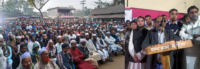 রাজাগঞ্জ ইউনিয়ন পরিষদের চেয়ারম্যান ফখরুল ইসলামের সভাপতিত্বে ও ইউনিয়ন আওয়ামী লীগের সহসভাপতি এটিএম সোহেল রানা ও যুগ্ম সাধারণ সম্পাদক মাহবুব আহমদ চুন্নু এবং বঙ্গবন্ধু ফাউন্ডেশন সিলেট জেলা কমিটির সদস্য জাকের আহমদের যৌথ পরিচালনায় প্রতিবাদ সমাবেশে বক্তব্য রাখেন, উপজেলা আওয়ামী লীগের যুগ্ম সাধারণ সম্পাদক ইউপি চেয়ারম্যান মাসুদ আহমদ, জেলা পরিষদের সদস্য ইমাম উদ্দিন চৌধুরী, ঝিঙ্গাবাড়ী ইউপি চেয়ারম্যান আব্বাস উদ্দিন, সাবেক ইউপি চেয়ারম্যান বিএনপি নেতা রফিক আহমদ চৌধুরী, আ’লীগ নেতা অলিউর রহমান, সাবেক ইউপি চেয়ারম্যান বাহা উদ্দিন চৌধুরী, বঙ্গবন্ধু ফাউন্ডেশন সিলেট জেলার সাধারণ সম্পাদক সাংবাদিক আব্দুল হালিম সাগর, গাছবাড়ী সমাজ কল্যাণ পরিষদের সভাপতি আখতার হোসেন, আ’লীগ নেতা আবু সায়েম, কেন্দ্রীয় ছাত্রলীগের সাবেক ধর্ম বিষয়ক সম্পাদক খায়ের আহমদ চৌধুরী, আ’লীগ নেতা আব্দুল আজিজ, বিলাল আহমদ, শহিদুর রহমান, বিএনপি নেতা আব্দুল মতিন শিকদার, ইউপি সদস্য নুরুল ইসলাম কালা, মাস্টার সাজিদুর রহমান, প্রবাসী শাহাব উদ্দিন, ইউপি সদস্য রফিক মিয়া, সুহেল আহমদ, শরফ উদ্দিন, মিনহাজ উদ্দিন, অলিউর রহমান, আছা মিয়া, সাবেক ছাত্রনেতা হারুন রশিদ, হামজা হেলাল, প্রবাসী বাহারুল ইসলাম, মাওঃ আইয়ুব আলী, শ্রমিকলীগ নেতা লুৎফুর রহমান, মাওঃ আব্দুর রহমান, খালেদ আহমদ প্রমুখ।