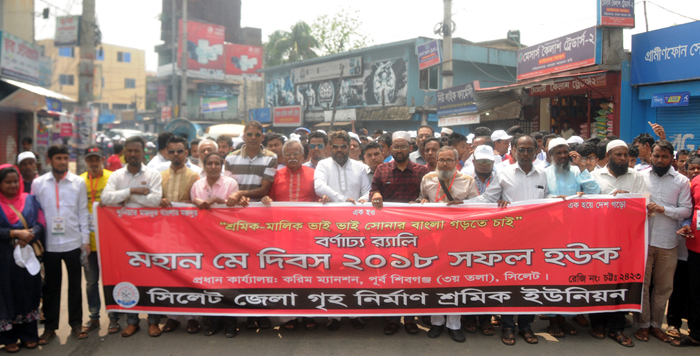 মে দিবসে সিলেট জেলা গৃহ নির্মাণ শ্রমিক ইউনিয়নের র‌্যালি