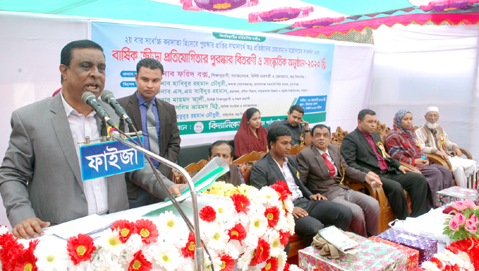 মঙ্গলবার নগরীর পশ্চিম পাঠানপাড়ানস্থ বিদ্যানিকেতনের ক্যাম্পাসে সংবর্ধনা, বার্ষিক ক্রীড়া প্রতিযোগিতার পুরস্কার বিতরণ ও সাংস্কৃতিক অনুষ্ঠানে প্রধান অতিথির বক্তব্যে তিনি এসব কথা বলেন। অনুষ্ঠানে দ্বিতীয়বার সর্বোচ্চ করদাতার পুরস্কারপ্রাপ্তির সম্মাণার্থে ফরিদ বক্সকে প্রতিষ্ঠানের পক্ষ থেকে সম্মানতা স্মারক দিয়ে সংবর্ধনা প্রদান করা হয়।