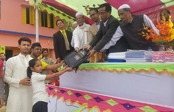 অনুষ্ঠান শেষে পিইসি পরীক্ষায় জিপিএ-৫ প্রাপ্ত, দরিদ্র ও মেধাবী শিক্ষার্থীদের হাতে শিক্ষা উপকরণ তুলে দেন অতিথিবৃন্দ।