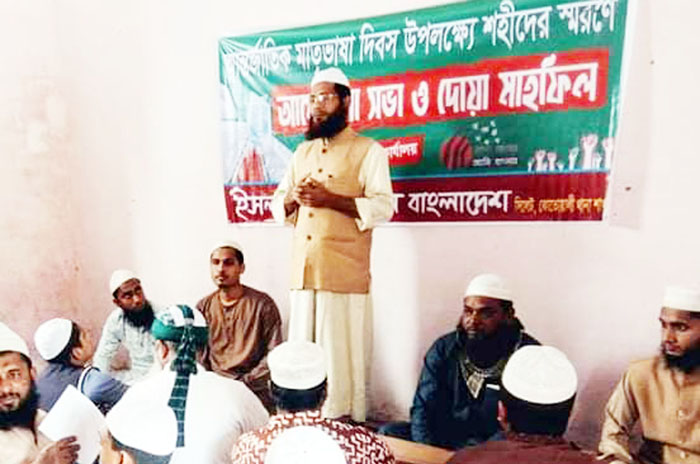 সংগঠনে সহসভাপতি মো. শাহজালাল মিয়ার সভাপতিত্বে ও থানা সেক্রেটারী মো. আনোয়ার হোসেন এর পরিচালনায় আন্তর্জাতিক মাতৃভাষা দিবসে শহীদেদর স্মরণে দোয়া মাহফিল ও আলোচনা সভায় প্রধান অতিথি হিসেবে বক্তব্য রাখেন ইসলামী আন্দোলন বাংলাদেশ সিলেট মহানগর শাখার সহ সভাপতি ডা. রিয়াজুল ইসলাম রিয়াজ।