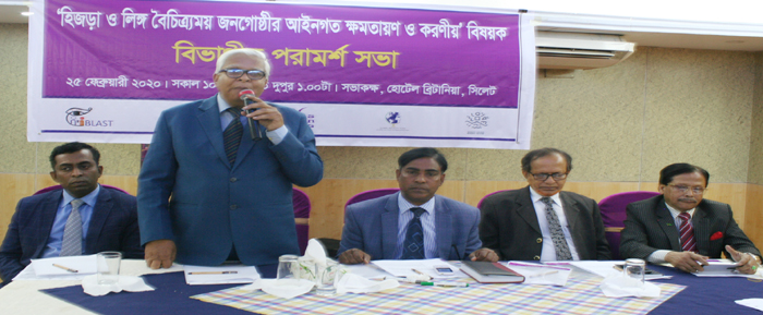 তিনি মঙ্গলবার সিলেট ইউনিট বøাস্ট আয়োজিত দুপুরে নগরীর আম্বরখানাস্থ একটি হোটেলের কনফারেন্স হলে হিজড়া ও লিঙ্গ বৈচিত্রময় জনগোষ্ঠীর আইনগত ক্ষমতায়ন ও করণীয় বিষয়ক বিভাগীয় পরামর্শ সভায় প্রধান অতিথির বক্তব্য দেন।