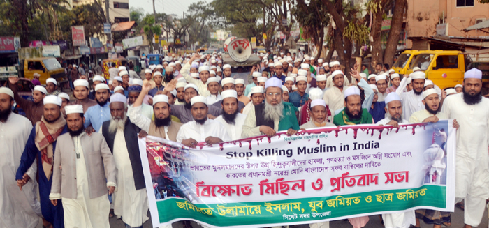 ভারতে মুসলিম গণহত্যা-নির্যাতন ও মসজিদ-মিনারে অঙ্গিসংযোগের প্রতিবাদে জমিয়তে উলামায়ে ইসলাম, যুব জমিয়ত ও ছাত্র জমিয়ত সিলেট সদর উপজেলা শাখার উদ্যোগে বৃহস্পতিবার বাদ আছর শাহপরাণে বিক্ষোভ মিছিল ও সমাবেশ বের করা হয়।