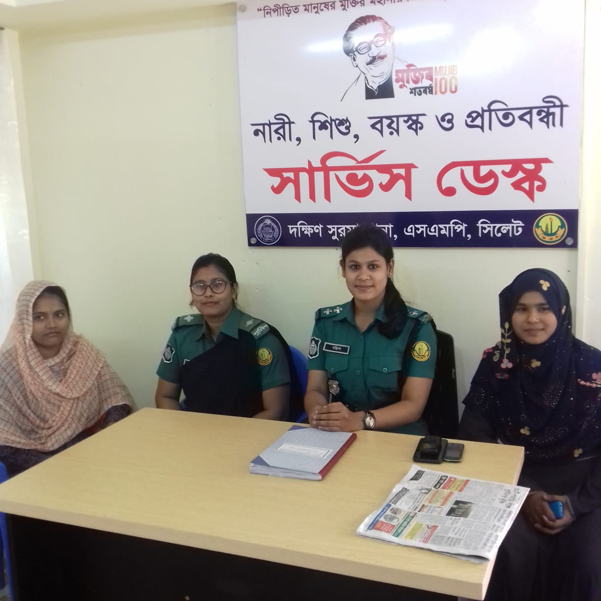 এসএমপি’র ৬ টি থানায় নারী, শিশু, বয়স্ক ও প্রতিবন্ধীদের জন্য আলাদা সার্ভিস ডেস্কের দায়িত্বপ্রাপ্ত কর্মকর্তারা হলেন- কোতোয়ালী মডেল থানার এসআই রিংকুরানী দাশ (০১৭১২-৮১৫৯৬২), জালালাবাদ থানার এসআই শাহিনূর বেগম (০১৭৬৮-৫২১৯২৯), এয়ারপোর্ট থানার এসআই শাহনাজ আক্তার (০১৭১৬-৩৮৭৬৪০), দক্ষিণ সুরমা থানা এসআই মল্লিকা তাংক্ষান্তা (০১৭৫৩-৮২০৬৬৬), মোগলাবাজার থানার এসআই হাসিনা খাতুন (০১৭১৭-৪২০২৭৯) এবং শাহপরাণ (রহ.) থানার এসআই জুবেদা বেগম (০১৭২০-৯০২২৭৬)।
