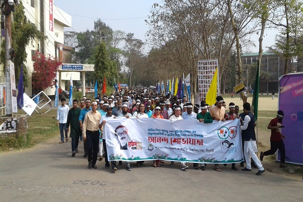 এরপর বিশ্ববিদ্যালয়ের গোলচত্বরে বেলুন উড়ানো শেষে শিক্ষক, কর্মকর্তা-কর্মচারী ও শিক্ষার্থীদের নিয়ে একটি বর্ণাঢ্য র‌্যালি বের করা হয়। র‌্যালিটি ক্যাম্পাসের বিভিন্ন সড়ক প্রদক্ষিণ করে একই স্থানে এসে শেষ হয়। পরে বিশ্ববিদ্যালয়ের-ডি বিল্ডিং গ্রাউন্ড ফ্লোরে বঙ্গবন্ধু সম্পর্কিত আলোকচিত্র প্রদর্শনী পর্যবেক্ষণ করেন উপাচার্য।