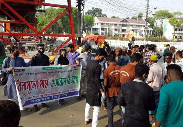 এ সময় প্রায় ২শ’ সাধারণ মানুষের মধ্যে মাস্ক, সাবান ও সচেতনতামূলক লিফলেট বিতরণ করা হয়।