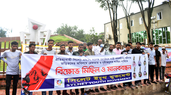 ধর্ষণের ঘটনায় দোষীদের শাস্তির দাবীতে সিলেট ইয়ুথ মুভমেন্টের মানববন্ধন