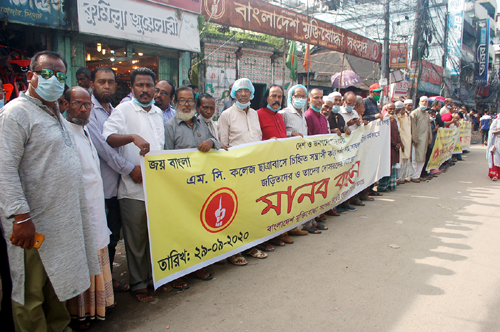 ২৯ সেপ্টেম্বর মঙ্গলবার বেলা ২টায় জিন্দাবাজারস্থ মুক্তিযোদ্ধা সংসদের সামনে এই মানববন্ধন পালন করেন বাংলাদেশ মুক্তিযোদ্ধা সংসদ সিলেট জেলা ইউনিট কমান্ড ও মুক্তিযোদ্ধা সংসদ সন্তান কমান্ড সিলেট জেলা ও মহানগর এবং যুব কমান্ডের নেতৃবৃন্দ।