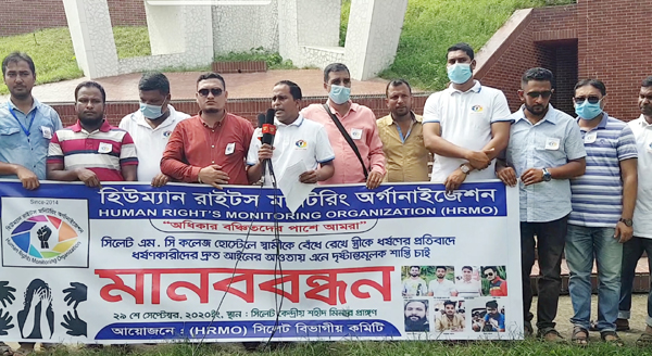 সিলেটে ধর্ষণকারীদের শাস্তির দাবীতে হিউম্যান রাইটস্ মনিটরিং অর্গানাইজেশনের মানববন্ধন