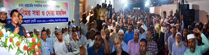 সিলেট সিটি কর্পোরেশনের ৪নং ওয়ার্ডের নাগরিকদের নিয়ে সিসিক প্যানেল মেয়র কাউন্সিলার রেজাউল হাসান কয়েস লোদীর উদ্যোগে এক মতবিনিময় সভা ও দোয়া মাহফিল সম্পন্ন হয়েছে। শনিবারে সন্ধ্যায় নগরীর হাউজিং এস্টেটস্থ কাউন্সিলার কার্যালয়ের পার্শে¦ উক্ত মতবিনিময় সভা ও দোয়া মাহফিল অনুষ্ঠিত। সভায় ৪নং ওয়ার্ডের বিশিষ্ট নাগরিকবৃন্দ ছাড়াও সকল শ্রেনী পেশার সহ¯্রাধিক মানুষ অংশ নেন।