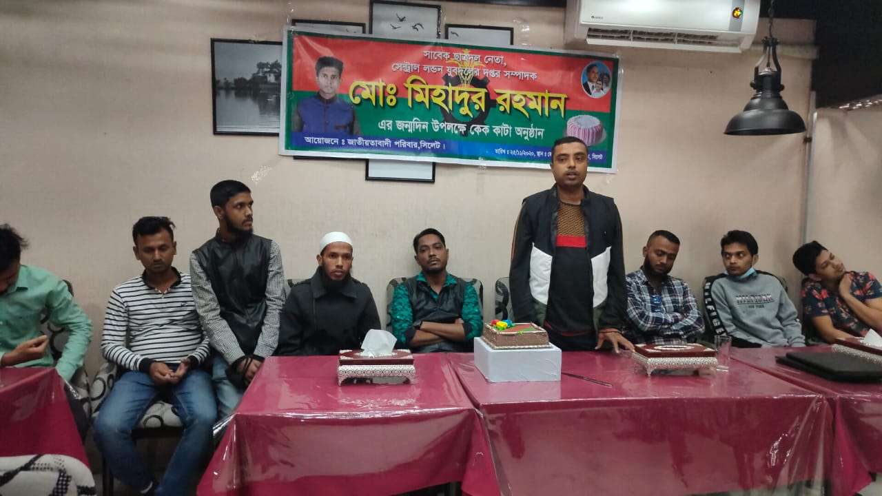 সিলেটে সেন্ট্রাল যুবদলের দপ্তর সম্পাদক মিহাদুর রহমানের জন্ম‌দিন পালন
