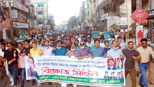 শহীদ জিয়া উচ্চ বিদ্যালয়ের নাম পরিবর্তনের প্রতিবাদে সিলেটে স্বেচ্ছাসেবক দলের মিছিল