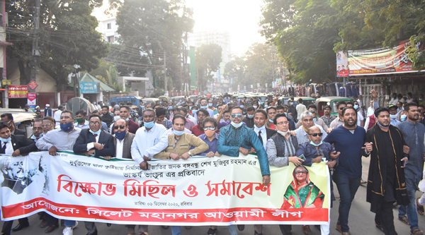 রোববার (৬ ডিসেম্বর) বিক্ষোভ মিছিলটি সিলেটের রেজিষ্ট্রারী মাঠ থেকে শুরু করে নগরীর বিভিন্ন রাস্তা প্রদক্ষিণ করে কোর্ট পয়েন্টে এসে এক সংক্ষপ্তি সমাবেশ অনুষ্ঠিত হয়।