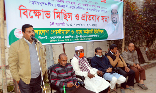 বাংলাদেশ পোষ্টম্যান ও ডাক কর্মচারী ইউনিয়ন কেন্দ্রীয় কমিটির প্রতিষ্ঠাতা সাধারণ সম্পাদক, কুষ্টিয়া শ্রমিক লীগের সাধারণ সম্পাদক, জাতীয় শ্রমিক লীগ কেন্দ্রীয় কমিটির কার্যনিবার্হী সদস্য, ঢাকা শ্রম আদালত-৩ এর সদস্য, ১০ হাজার ডাক কর্মচারীর চাকুরী স্থায়ীকরণে অগ্রণী ভূমিকা পালনকারী আলহাজ¦ মো. আমজাদ আলীকে ষড়যন্ত্রমূলক মামলায় জেল হাজতে প্রেরণের প্রতিবাদে বাংলাদেশ পোষ্টম্যান ও ডাক কর্মচারী ইউনিয়ন, সিলেট-সুনামগঞ্জ ও আংশিক মৌলভীবাজার জেলা শাখার উদ্যোগে এক প্রতিবাদ সভা ও বিক্ষোভ মিছিল অনুষ্ঠিত হয়েছে। বৃহস্পতিবার (১৪ জানুয়ারি সিলেট প্রধান ডাকঘর প্রাঙ্গনে বিকেল সাড়ে ৫টায় এই প্রতিবাদ সভা ও বিক্ষোভ মিছিল অনুষ্ঠিত হয়।