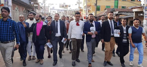 আসন্ন জকিগঞ্জ পৌরসভা নির্বাচনে ধানের শীষের মেয়র প্রার্থী ইকবাল হোসেনের সমর্থনে এক কর্মী সভা অনুষ্ঠিত হয়েছে। মঙ্গলবার জকিগঞ্জের মেয়র প্রার্থী ইকবাল হোসেনের দলীয় কার্যালয়ে এই কর্মী সভা অনুষ্ঠিত হয়। উপজেলা বিএনপির আহŸায়ক এড. কাওসার রশীদ বাহারের সভাপতিত্বে এতে অতিথি হিসাবে বক্তব্য রাখেন সিলেট জেলা বিএনপির আহŸায়ক কমিটির অন্যতম সদস্য সিলেট জেলা যুবদলের সাবেক সভাপতি আব্দুল মান্নান, সিলেট জেলা ছাত্রদলের সাবেক সভাপতি এড এমরান আহমদ চৌধুরী, ইসতিয়াক আহমদ সিদ্দিকী, ছাত্রদল কেন্দ্রীয় সংসদের সাবেক সহ-সভাপতি মাহবুবুল হক চৌধুরী ভিপি মাহবুব প্রমূখ। পরে প্রচারণা, গনসংযোগ ও লিফলেট বিতরণ করা হয়। গণসংযোগকালে বক্তারা বলেন, জনগণ ধানের শীষ প্রতীকে ভোট দেওয়ার জন্য মুখিয়ে আছে। নির্বাচন অবাধ ও সুষ্ঠু হলে আমাদের দলীয় প্রার্থীই বিজয়ী হবে। জবর-দখল ছাড়া তার বিজয় কেউ ঠেকিয়ে রাখতে পারবে না। অন্যান্যের মধ্যে নির্বাচনী প্রচারণায় উপস্থিত ছিলেন সিলেট জেলা যুবদলের সাবেক সভাপতি ও বিএনপির আহŸায়ক কমিটির সদস্য আব্দুল মান্নান, জেলা বিএনপির আহŸায়ক কমিটির সদস্য জেলা ছাত্রদলের সাবেক সভাপতি এড. এমরান আহমদ চৌধুরী, ইসতিয়াক আহমদ সিদ্দিকী, জাতীয়তাবাদী ছাত্রদল কেন্দ্রীয় সংসদের সাবেক সহ-সভাপতি, সিলেট জেলা বিএনপির আহŸায়ক কমিটির সদস্য জকিগঞ্জের কৃতি সন্তান মাহবুবুল হক চৌধুরী ভিপি মাহবুব, এড কাওছার রশীদ বাহার , বদরুল হক বাদল, জাহাঙ্গীর শাহ হেলাল, শফিকুর রহমান, তোফায়েল আহমদ চৌধুরী, ময়নুর রাজা মানিক, এড মোস্তাক আহমদ, আক্তার হোসেন রাজু, ইসমাইল হোসেন সেলিম, মাজহারুল ইসলাম সেলিম, আবুল কালাম, মাসুক আহমদ, মঞ্জুর আহমদ, সামসুল ইসলাম লেইছ, দিদার ইবনে তাহের লস্কর, আব্দুল্লাহ আল মাহমুদ চৌধুরী, আব্দুল্লাহ আল মামুন সামুন, কবির আহমদ, ফয়জুর রহমান, হিফজুর রহমান, জিয়াউর রহমান, আনোয়ার হোসেন, রেজাউল হক চৌধুরী, দেলোয়ার হোসেন চৌধুরী, শাহজাহান চৌধুরী, হাবিবুর রহমান, আশরাফ চৌধুরী, হাফিজ আহমদ সুজন, সুলতান আহমদ প্রমুখ। এছাড়াও জকিগঞ্জ উপজেলা ও পৌর বিএনপি যুবদল, শ্রমিক দল, স্বেচ্ছাসেবক দল এবং ছাত্রদলের নেতৃবৃন্দও উপস্থিত ছিলেন।