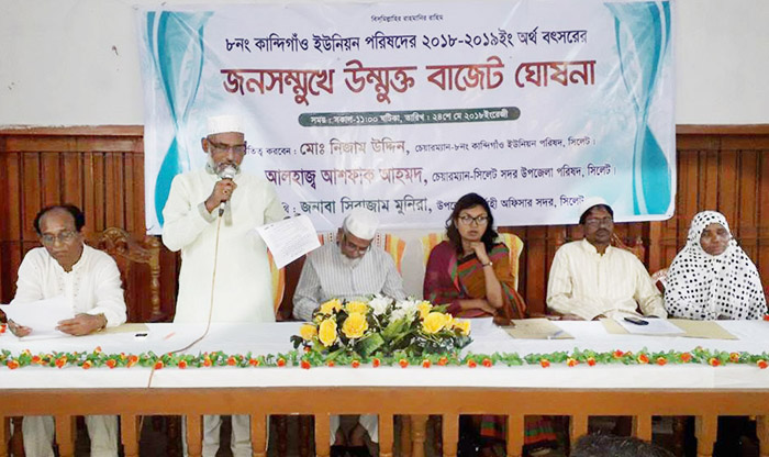 সিলেট সদর উপজেলার ৮নং কান্দিগাঁ ইউনিয়ন পরিষদের ২০১৮-১৯ অর্থ বছরের উন্মুক্ত বাজেট ঘোষণা করা হয়েছে। ২৪ মে বৃহস্পতিবার সকালে পরিষদ মিলনায়তনে বাজেট ঘোষণা করেন ইউনিয়ন পরিষদের চেয়ারম্যান মোঃ নিজাম উদ্দিন। বাজেটে ৩ কোটি ৩ লাখ ৫২ হাজার ৬৭১ টাকা আয় এবং ৩ কোটি ১ লাখ ৫২ হাজার ৬৭১ শত টাকা ব্যয় ধরে বছর শেষে ২লাখ টাকা উদ্বৃত্ত দেখানো হয়েছে।