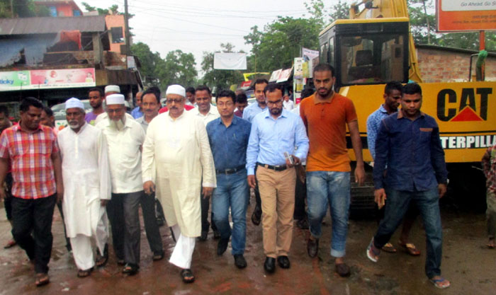 সিলেট-সুলতানপুর সড়কের সাময়িক সংস্কার কাজ পরিদর্শনে এমপি কয়েস