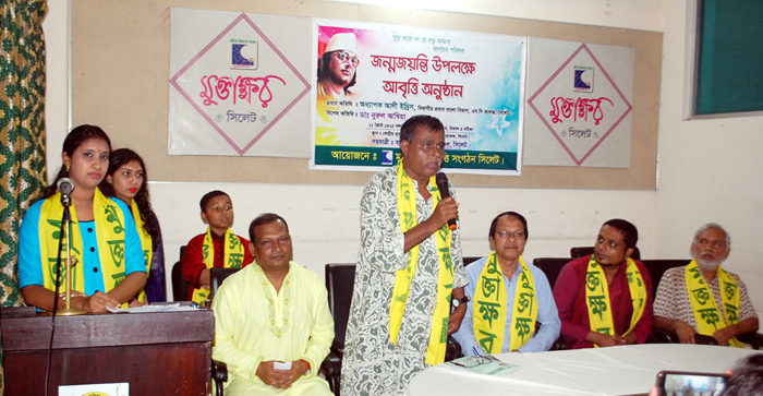 বিশেষ অতিথির বক্তব্য রাখেন ডা. নুরুল আম্বিয়া। অনুষ্ঠানে স্বাগত বক্তব্য রাখেন মুক্তাক্ষরের পরিচালক আবৃত্তি প্রশিক্ষক বিমল কর। সংক্ষিপ্ত বক্তব্য রাখেন মুবিন হোসেন চৌধুরী, পরিচালক বাংলাদেশ কেমিস্ট এন্ড ড্রাগিস্ট সমিতির সকি সিরজাুল হক। বিদ্রোহী কবি কাজী নজরুল ইসলামের ১১৯তম জন্ম জয়ন্তিতে সাম্যবাদের কবির নিচু চোর, কুলি মজুর, মানুষ, মটকু মাইতি, অভিযান, খোকার গল্প বলা, সর্বহারা, আশির্বাদ, কমল কাটা, ঈশ্বর, সাম্যবাদী, ব্যাথার দান, পথহারা, প্রভাতী, চলচল, খোকার সাধ, নতুন খাবার, সংকল্প কবিতায় আবৃত্তি করেন সুস্মিতা, পিউ, প্রান্ত, মীম, পূজা, শুচি, আদিত্য, স্নেহা, বৃষ্টি, পরশ, রাফি, আব্দুল­া, তাবাসুম, রিতম, সুপার্থ, যুবরাজ, ত্রয়ি, বর্ণিল।