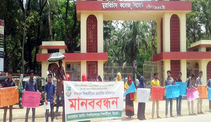 সিলেটে সাধারণ শিক্ষার্থীদের মানববন্ধন