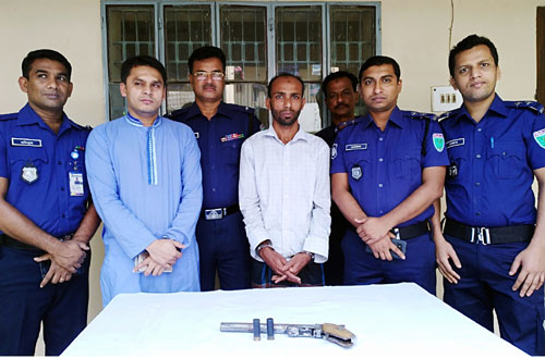 রবিবার রাতে গোপন সংবাদের ভিত্তিতে অতিরিক্ত পুলিশ সুপার মোস্তাক সরকার ও ওসি হাবিবুর রহমানের নেতৃত্বে এসআই সৈয়দ ইমরুজ তারেক একদল পুলিশ নিয়ে তার বাড়ীতে অভিযান চালিয়ে একটি শুটারগান ও ২ রাউন্ড গুলিসহ তাকে আটক করে।