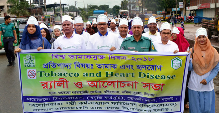 ‘বিশ^ তামাকমুক্ত দিবস’ উপলক্ষে সমৃদ্ধি কর্মসূচি টিএমএসএস তেতলী শাখার উদ্যোগে পল্লী কর্ম-সহায়ক ফাউন্ডেশন (পিকেএসএফ) ও সোশ্যাল এ্যাডভোকেসি এ্যান্ড নলেজ ডিসেমিনেশন ইউনিটের সহযোগিতায় বৃহস্পতিবার দুপুরে দক্ষিণ সুরমা উপজেলার বদিকোনাস্থ টিএমএসএস কার্যালয়ের সামন থেকে এক র‌্যালি বের হয়। র‌্যালীটি বিভিন্ন সড়ক প্রদক্ষিণ শেষে টিএমএসএস কার্যালয়ের এক আলোচনা সভায় মিলিত হয়।