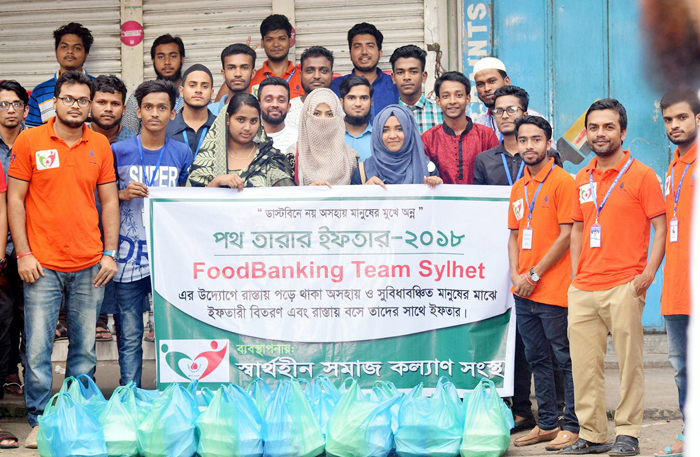 ‘ডাস্টবিনে নয় অসহায় মানুষের মুখে অন্ন’ এই স্লোগানকে সামনে রেখে গুটি কয়েক স্বপ্নবাজ তরুণদের হাত ধরেই ১৫ সেপ্টেম্বর ২০১৭ খ্রি: থেকে পথ চলা শুরু হয় স্বার্থহীন সমাজকল্যাণ সংস্থার ব্যবস্থাপনায় ফুডব্যাংকিং টিম সিলেট এর। যা এখনো চলমান রয়েছে। সিলেট শহরের যেকোনো ধরনের অনুষ্ঠানের খাবার অবশিষ্ট রয়ে গেলে, সেই খাবার সংগ্রহ করে বিতরণ করে দেয় রাস্তার ধারে পড়ে থাকা অসহায় মানুষের হাতে। আমাদের টিমের কল সেন্টার ২৪ ঘন্টা খোলা থাকে। যার কারনে মানুষজন খাবারের জন্য কল দিলে ১০-২০ মিনিটের মধ্যে সেই জায়গায় পৌছে যায় ফুডব্যাংকিং টিম সিলেটের স্বেচ্ছাসেবকগণ। মানুষের দানকরা খাবারগুলো নিয়ে আসা হয় টিমের অস্থায়ী কার্যালয়ে এবং সেখান থেকে প্যাকেটিং করে বিতরণ করা হয়।