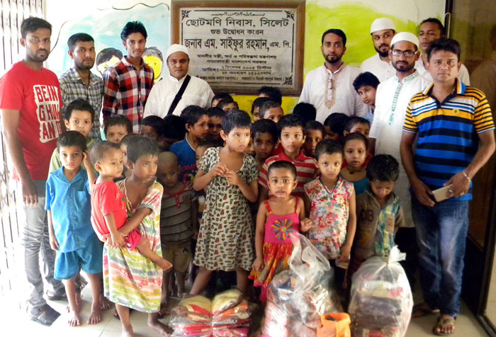 সিলেট নগরীর বাগবাড়ীস্থ ছোট মণি নিবাসের শিশুদের মধ্যে ঈদ বস্ত্র বিতরণ করেছেন তরুণ পাঁচ সমাজকর্মী। শুক্রবার দুপুরে ছোট মণি নিবাসের শিশুদের মধ্যে ঈদ বস্ত্র ও জুতা বিতরণ করা হয়।