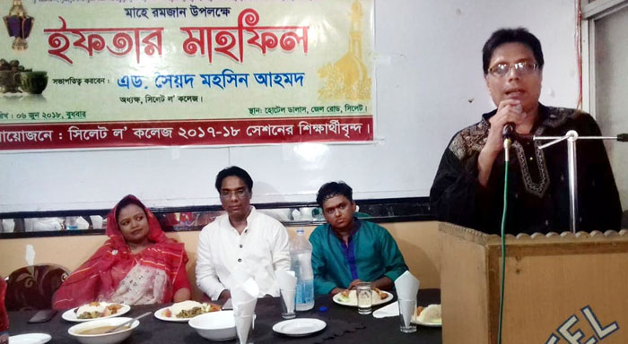 সিলেট ল’ কলেজের অধ্যক্ষ, সিলেট জজ কোর্টের সিনিয়র আইনজীবী সৈয়দ মহসিন আহমদ এর সভাপতিত্বে এবং ২০১৭-১৮ সেশনের শিক্ষার্থীদের শাহীন আহমদ ও সৈয়দ দিলওয়ার হোসেন জামিলের যৌথ পরিচালনায় ইফতার পূর্ব আলোচনা সভায় বক্তব্য রাখেন সিলেট জেলা আইনজীবী সমিতির সাবেক সভাপতি ও সিলেট ল’ কলেজের সিনিয়র লেকচারার এমাদ উল্লাহ শহিদুল ইসলাম শাহীন, কলেজের প্রভাষক ড. ফৌজিয়া সুলতানা, আবুল খায়ের হেলাল আহমদ ও রাশেদুল ইসলাম।