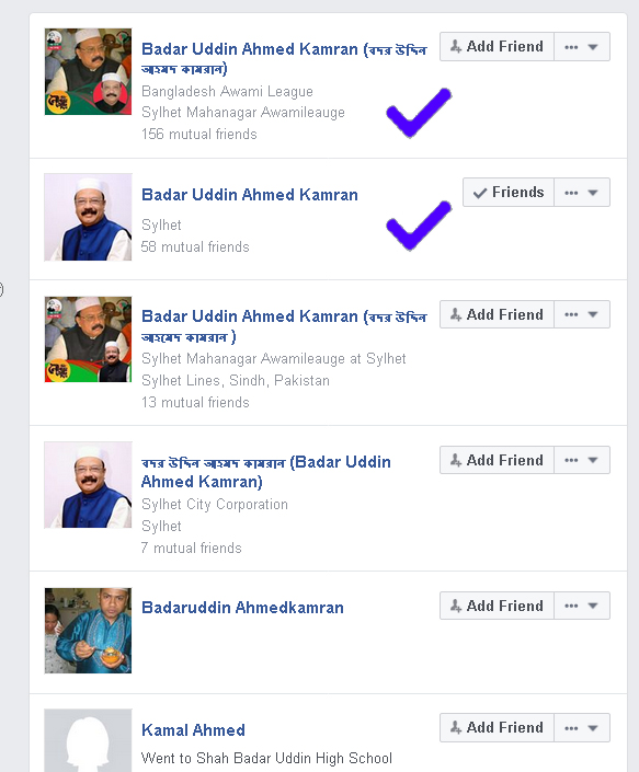 স¤প্রতি বদর উদ্দিন আহমদ কামরানের নামে ফেসবুকে সার্চ দিলে কয়েকটি অ্যাকাউন্ট পাওয়া যায়। এছাড়াও তার নামে রয়েছে অসংখ্য ভুয়া পেজ। আর সেসব ভুয়া আইডি ও পেজ থেকে বিভিন্ন সময়ে বিভিন্ন ধরণের ছবি, স্ট্যাটাস ও নিউজ লিংক পোস্ট করা হচ্ছে। একই সাথে সিলেটের বিভিন্ন শ্রেণীপেশার লোকজনকে এই আইডি থেকে ফ্রেন্ড রিকুয়েস্ট পাঠানো হচ্ছে। গত ২৬ জুন বদর উদ্দিন আহমদ কামরান নামে একটি ফেসবুক অ্যাকাউন্ট চালু করা হয়েছে। সেই ফেসবুক প্রোফাইলে প্রবেশ করলে দেখা যাচ্ছে কামরানের একটি ছবি প্রোফাইল পিকচার এবং \’উন্নয়নের জন্য নৌকা\’ শিরোনাম আর কামরানের ব্যক্তিগত ছবিসহ কাভার পিকচার হিসেবে ব্যবহার করা হচ্ছে। সেই অ্যাকাউন্ট থেকে নির্বাচনী প্রচারণা ও কার্যক্রমের নানা ছবি পোস্ট করা হচ্ছে। তবে সেখানে কামরানে ঠিকানা উলে­খ করা হয়েছে পাকিস্তানে!! পাকিস্তানের সিলেট লাইনস, সিন্ধ এলাকায় সেই কামরানের হোম সিটি উলে­খ করা হয়েছে। সেই সাথে জুড়ে দেয়া হয়েছে একটি মোবাইল নম্বর (০১৭২৭৬৫০৪৮৯)। যেটি কল করলে বন্ধ পাওয়া যাচ্ছে।