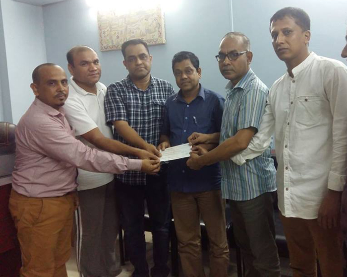 এম শাকুর সিদ্দিকীর পক্ষে সিলটিভির প্রধান সম্পাদক আল আজাদ কলেজ কর্তৃপক্ষের কাছে চেক হস্তান্তর করেন।
