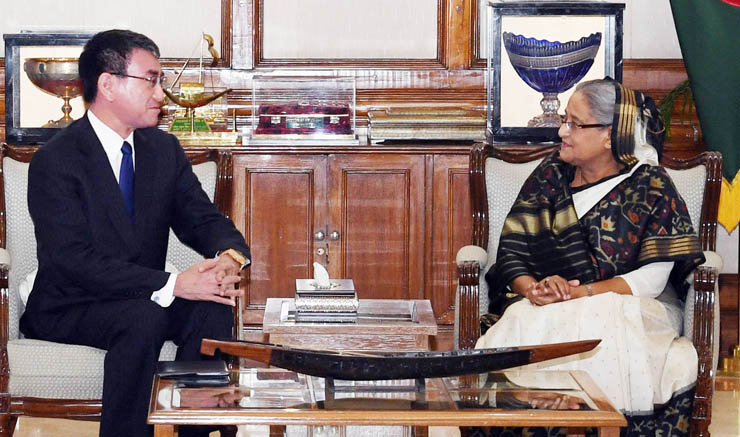 সফররত জাপানের পররাষ্ট্রমন্ত্রী তারো কোনো মঙ্গলবার সন্ধ্যায় প্রধানমন্ত্রী শেখ হাসিনার সঙ্গে তার সরকারি বাসভবন গণভবনে সৌজন্য সাক্ষাতে এলে শেখ হাসিনা একথা বলেন। বৈঠকের পরে প্রধানমন্ত্রীর প্রেস সচিব ইহসানুল করিম সাংবাদিকদের ব্রিফ করেন।