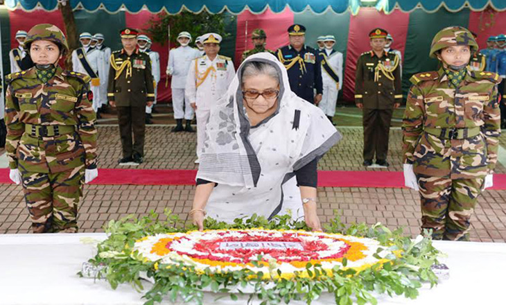 বুধবার সকাল ১০টা ৬ মিনিটে প্রধানমন্ত্রী শেখ হাসিনা টুঙ্গিপাড়ায় বঙ্গবন্ধু শেখ মুজিবুর রহমানের শাহাদতবার্ষিকী ও জাতীয় শোক দিবস উপলক্ষে তার সমাধিসৌধে ফুল দিয়ে শ্রদ্ধা নিবেদন করেন। প্রধানমন্ত্রী শ্রদ্ধা নিবেদনের পর সমাধির পাশে কিছু সময় নিরবে দাঁড়িয়ে থাকেন। এ সময় তিন বাহিনীর পক্ষ থেকে গার্ড অব অর্নার প্রদান করা হয়। বিউগলে বেঁজে ওঠে শোকের মূর্ছনা। বঙ্গবন্ধুর সমাধি সৌধে সৃষ্টি হয় শোকাবহ পরিবেশ।