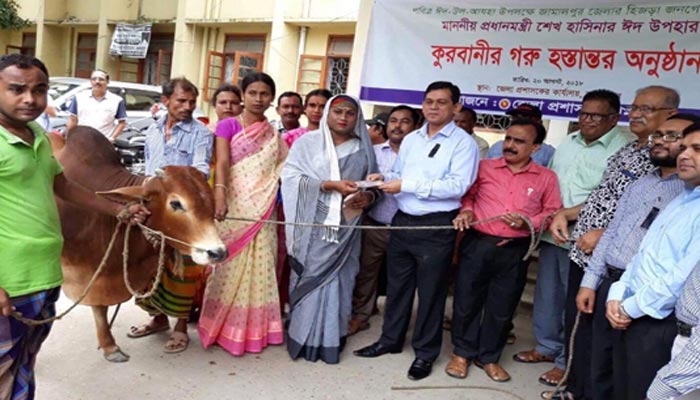জেলা প্রশাসক দুপুরে হিজড়া সম্প্রদায়ের কাছে এক লাখ টাকা দামের একটি গরু এবং আনুষঙ্গিক খরচের টাকা হস্তান্তর করেন।