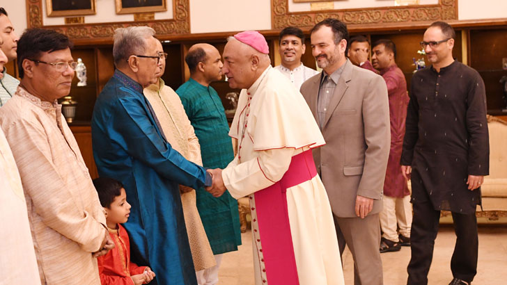 পবিত্র ঈদুল আজহা উপলক্ষে বুধবার সকালে বঙ্গভবনে সমাজের বিভিন্ন স্তরের মানুষের সঙ্গে শুভেচ্ছা বিনিময় করেন রাষ্ট্রপতি।