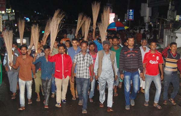 শনিবার সন্ধ্যা সাড়ে ছয়টার দিকে সিলেটের বিশ্বনাথে এক ট্রাক চালককে লাঞ্চিত করার প্রতিবাদে এ ঝাড়ু মিছিল করা হয়েছে।